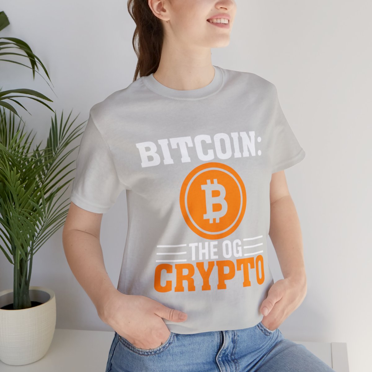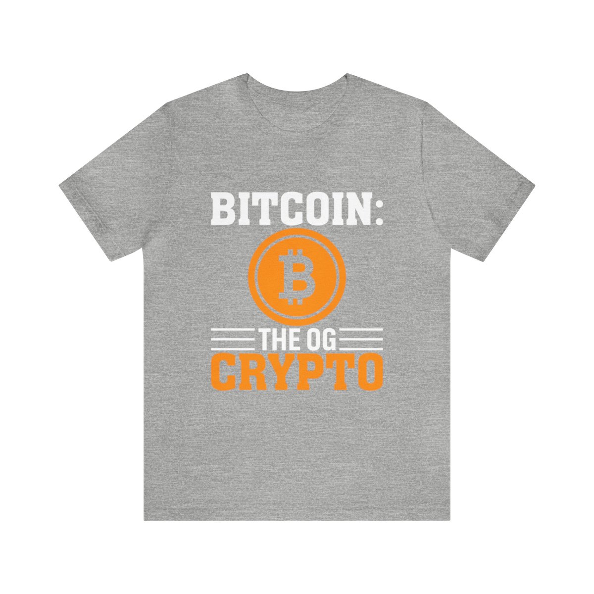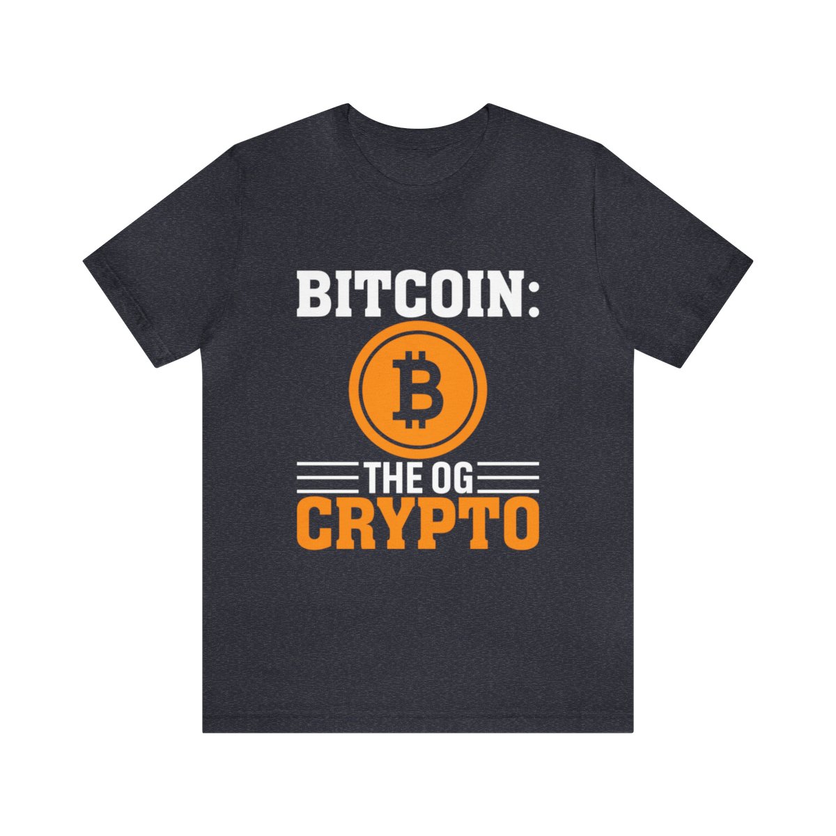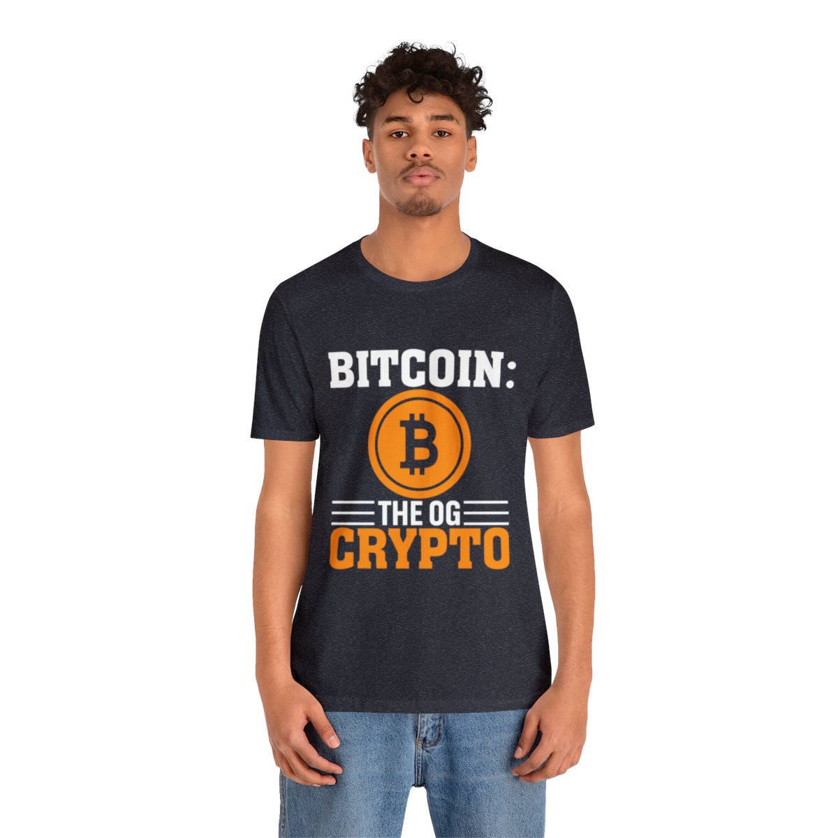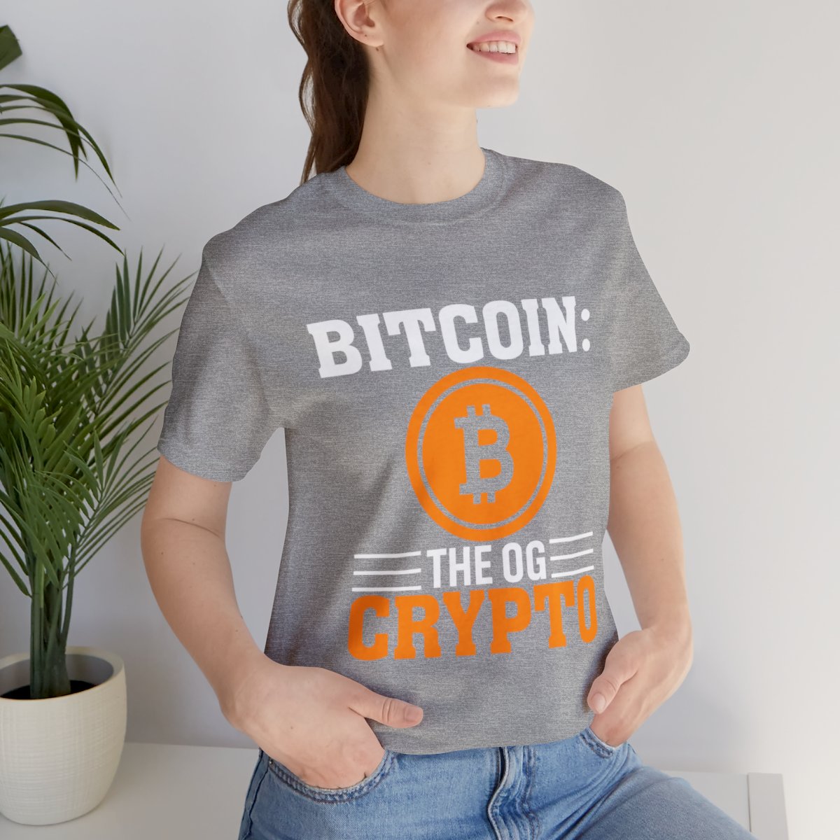 Introducing our “Bitcoin Legacy” T-shirt – a tribute to the original cryptocurrency that started it all. This classic unisex jersey short sleeve tee isn’t just an article of clothing; it’s a celebration of the OG Crypto, Bitcoin, and its enduring impact on the digital financial landscape. Crafted with meticulous attention to detail, this tee fits like a well-loved favorite, embracing you in the softness of high-quality cotton and a print that resonates with wearers time and time again. The ribbed knit collars provide durability and shaping, while the tapered shoulders ensure a fit that gets better over time. Dual side seams maintain the garment’s shape, promising longevity and continued comfort. Made with 100% Airlume combed and ring-spun cotton, the lightweight fabric (4.2 oz/yd² or 142 g/m²) is not just easy to layer but also breathable – an ideal choice for both active and leisure wear. The retail fit strikes the perfect balance for casual and semi-formal settings, complemented by a classic crew neckline that exudes a neat style, perfect for accessorizing. The tee proudly carries the empowering quote “Bitcoin: The OG Crypto,” inviting wearers to acknowledge the originality and resilience of the digital currency that paved the way for the entire crypto ecosystem. The tear-away label ensures a seamless, irritation-free experience. With fabric blends in Ash and Heather Prism colors, Heather colors, Athletic Heather, and Black Heather, you have a diverse range to match your individual style. Step into the legacy of Bitcoin, where comfort meets history, and every wear is a nod to the foundation of modern finance. Redefine your wardrobe and make a statement with this tee – because Bitcoin isn’t just a cryptocurrency; it’s the OG, the pioneer, the timeless icon.