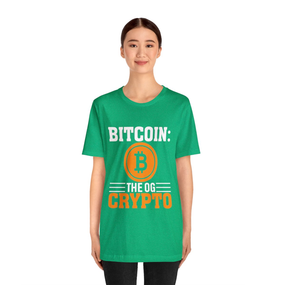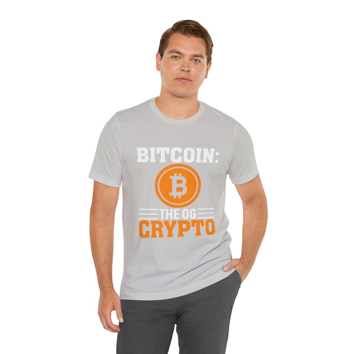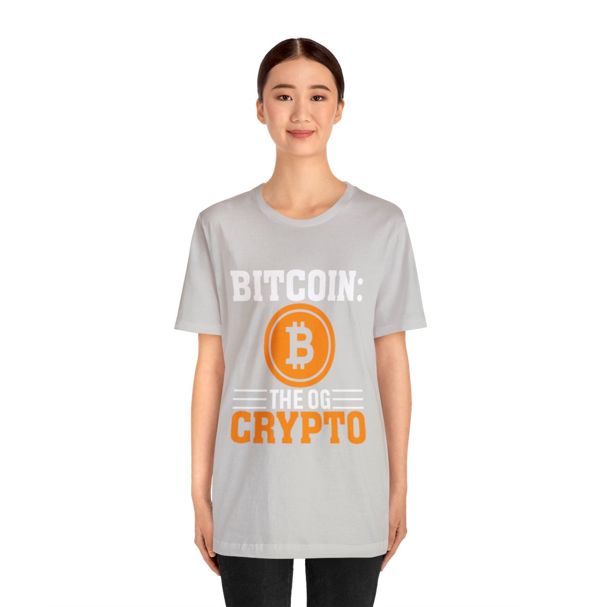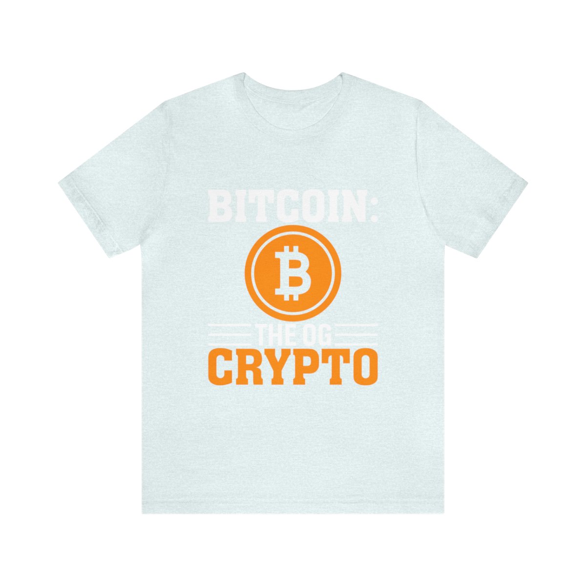 Introducing our “Bitcoin Legacy” T-shirt – a tribute to the original cryptocurrency that started it all. This classic unisex jersey short sleeve tee isn’t just an article of clothing; it’s a celebration of the OG Crypto, Bitcoin, and its enduring impact on the digital financial landscape. Crafted with meticulous attention to detail, this tee fits like a well-loved favorite, embracing you in the softness of high-quality cotton and a print that resonates with wearers time and time again. The ribbed knit collars provide durability and shaping, while the tapered shoulders ensure a fit that gets better over time. Dual side seams maintain the garment’s shape, promising longevity and continued comfort. Made with 100% Airlume combed and ring-spun cotton, the lightweight fabric (4.2 oz/yd² or 142 g/m²) is not just easy to layer but also breathable – an ideal choice for both active and leisure wear. The retail fit strikes the perfect balance for casual and semi-formal settings, complemented by a classic crew neckline that exudes a neat style, perfect for accessorizing. The tee proudly carries the empowering quote “Bitcoin: The OG Crypto,” inviting wearers to acknowledge the originality and resilience of the digital currency that paved the way for the entire crypto ecosystem. The tear-away label ensures a seamless, irritation-free experience. With fabric blends in Ash and Heather Prism colors, Heather colors, Athletic Heather, and Black Heather, you have a diverse range to match your individual style. Step into the legacy of Bitcoin, where comfort meets history, and every wear is a nod to the foundation of modern finance. Redefine your wardrobe and make a statement with this tee – because Bitcoin isn’t just a cryptocurrency; it’s the OG, the pioneer, the timeless icon.