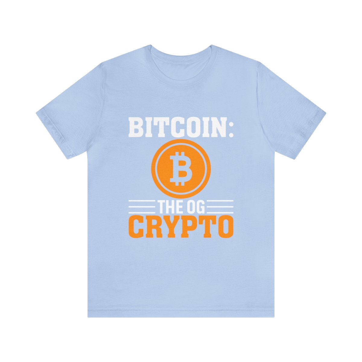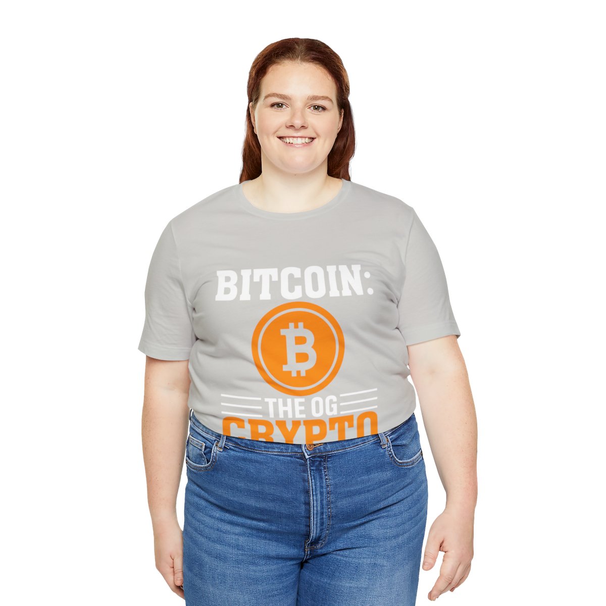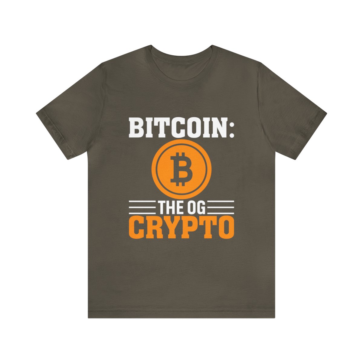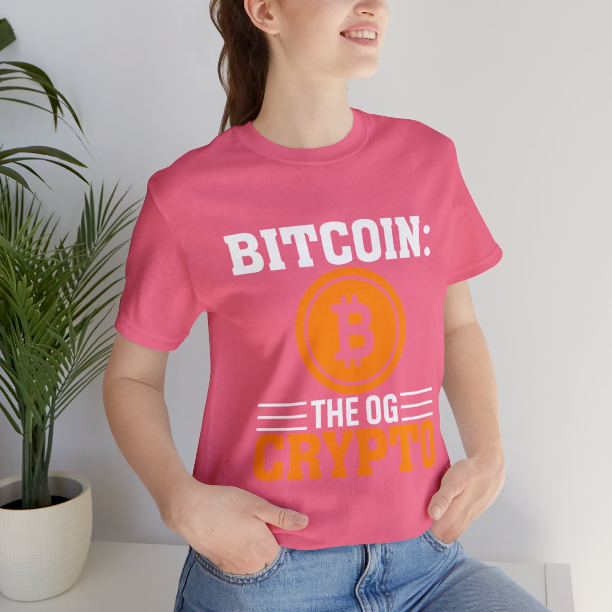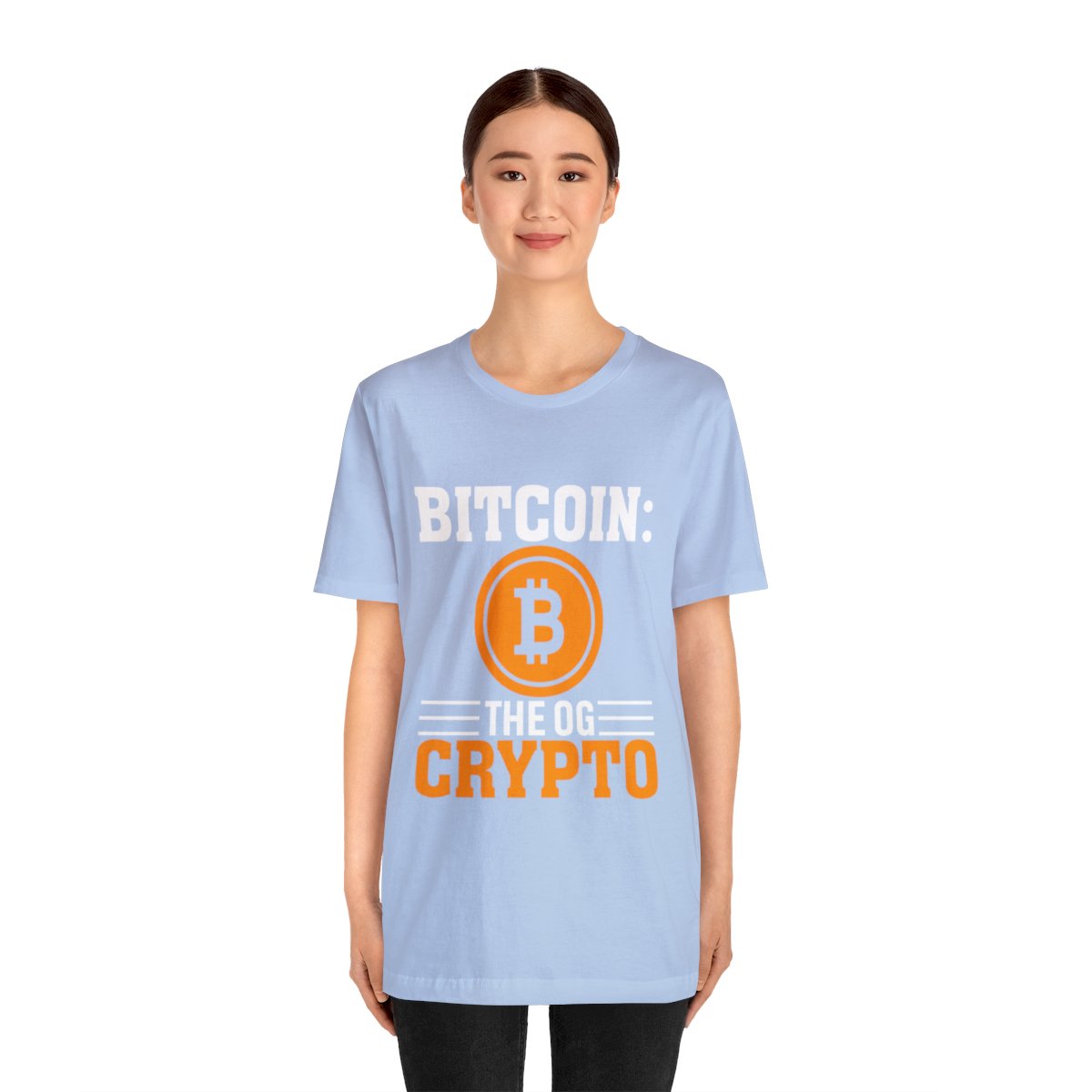 Introducing our “Bitcoin Legacy” T-shirt – a tribute to the original cryptocurrency that started it all. This classic unisex jersey short sleeve tee isn’t just an article of clothing; it’s a celebration of the OG Crypto, Bitcoin, and its enduring impact on the digital financial landscape. Crafted with meticulous attention to detail, this tee fits like a well-loved favorite, embracing you in the softness of high-quality cotton and a print that resonates with wearers time and time again. The ribbed knit collars provide durability and shaping, while the tapered shoulders ensure a fit that gets better over time. Dual side seams maintain the garment’s shape, promising longevity and continued comfort. Made with 100% Airlume combed and ring-spun cotton, the lightweight fabric (4.2 oz/yd² or 142 g/m²) is not just easy to layer but also breathable – an ideal choice for both active and leisure wear. The retail fit strikes the perfect balance for casual and semi-formal settings, complemented by a classic crew neckline that exudes a neat style, perfect for accessorizing. The tee proudly carries the empowering quote “Bitcoin: The OG Crypto,” inviting wearers to acknowledge the originality and resilience of the digital currency that paved the way for the entire crypto ecosystem. The tear-away label ensures a seamless, irritation-free experience. With fabric blends in Ash and Heather Prism colors, Heather colors, Athletic Heather, and Black Heather, you have a diverse range to match your individual style. Step into the legacy of Bitcoin, where comfort meets history, and every wear is a nod to the foundation of modern finance. Redefine your wardrobe and make a statement with this tee – because Bitcoin isn’t just a cryptocurrency; it’s the OG, the pioneer, the timeless icon.
