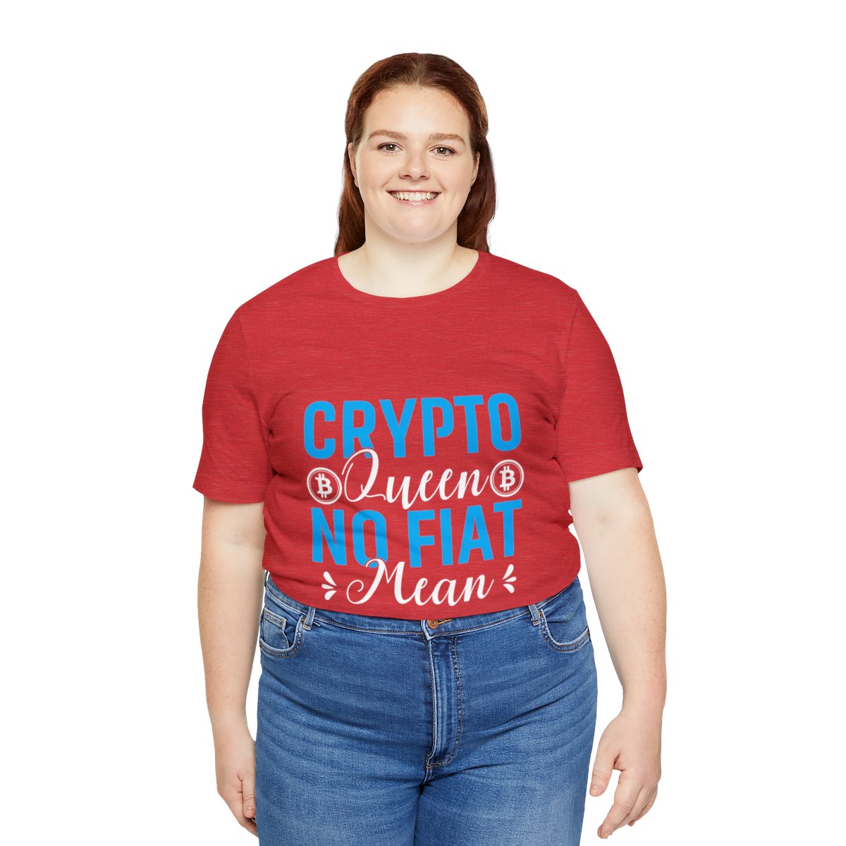 Emblazoned with the empowering quote “Crypto-Queen, No-Fiat Mean,” this tee transcends fashion, embodying a spirit of independence and resilience. The tear-away label minimizes skin irritations, ensuring comfort with every wear. With fabric blends in Ash, Heather Prism colors, Heather colors, Athletic Heather, and Black Heather, you have a diverse range to suit your unique style.