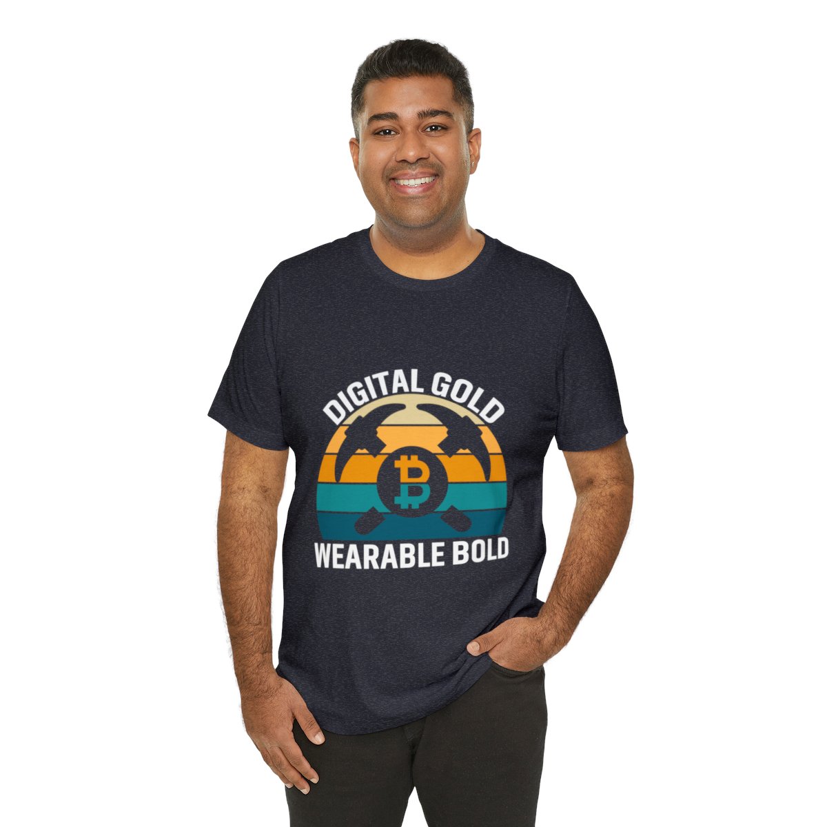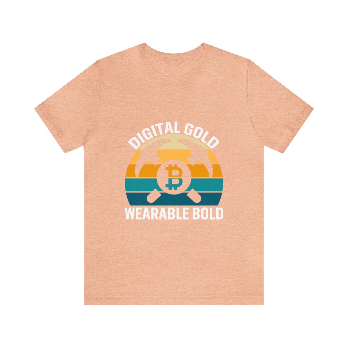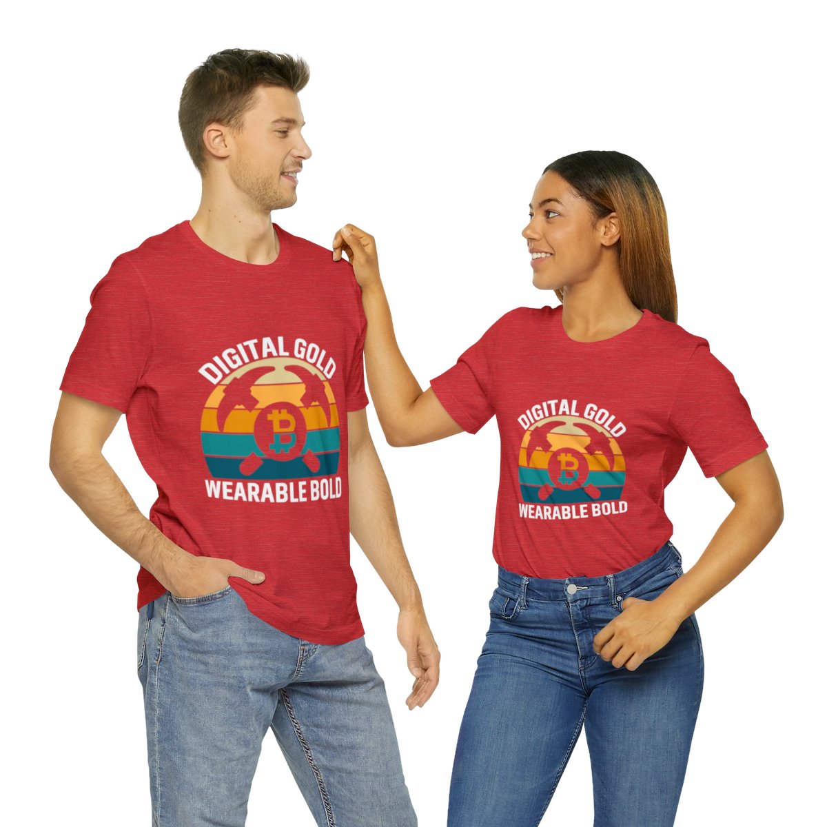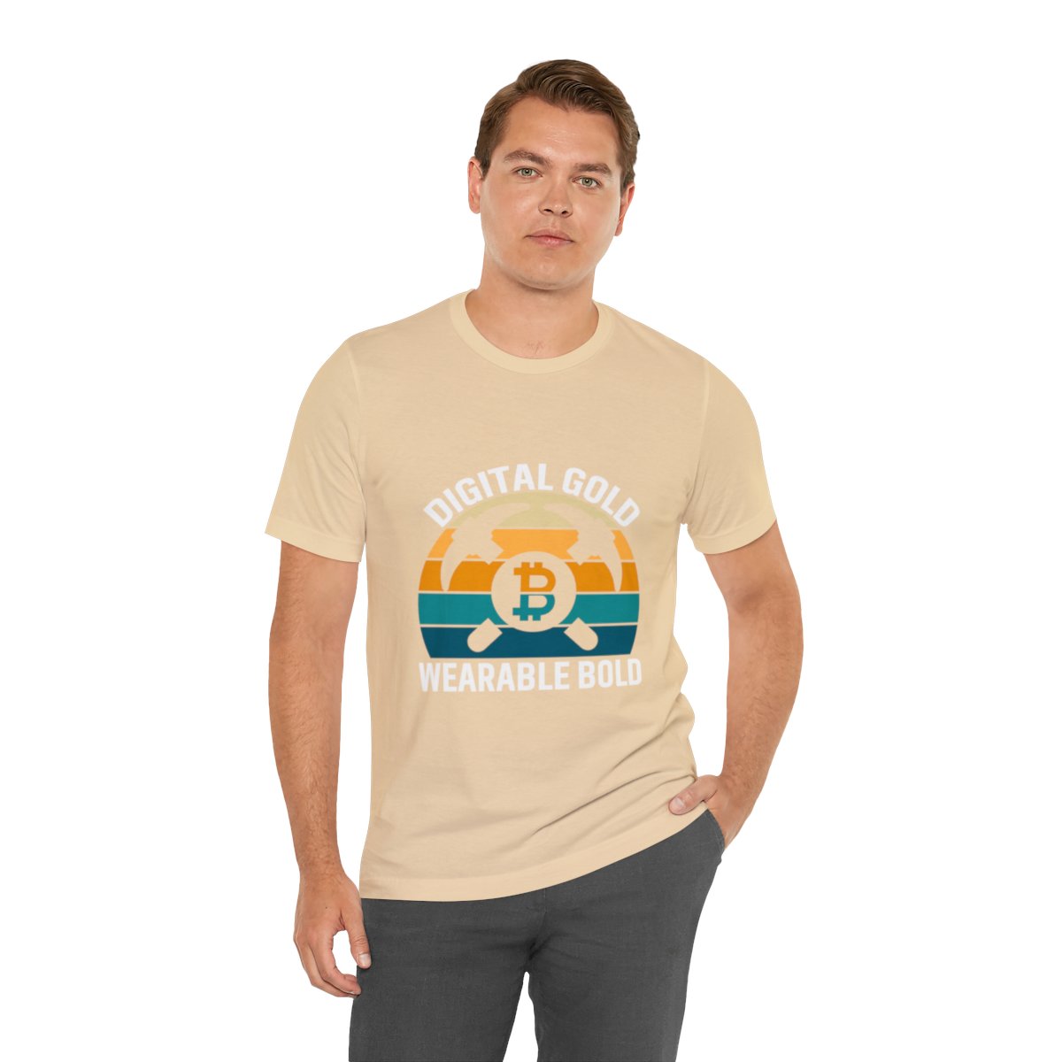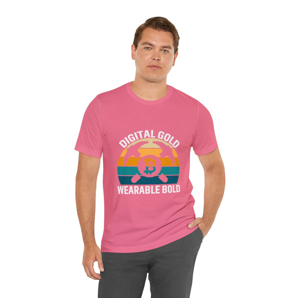 Introducing our “Digital Gold, Wearable Bold” T-shirt – a striking fusion of innovation and style that embodies the essence of cryptocurrency. This classic unisex jersey short sleeve tee isn’t just a garment; it’s a statement, a symbol of the modern era where digital meets bold. Crafted with meticulous attention to detail, this tee fits like a well-loved favorite, offering a luxurious embrace of soft cotton and a quality print that captures hearts over and over again. The ribbed knit collars contribute to shaping and durability, while the tapered shoulders ensure a fit that evolves with time. Dual side seams uphold the garment’s shape, providing enduring wear. Made with 100% Airlume combed and ring-spun cotton, the lightweight fabric (4.2 oz/yd² or 142 g/m²) is not only easy to layer but also breathable, catering to both active and leisure wear. The retail fit strikes a perfect balance for casual and semi-formal settings, complemented by a classic crew neckline that adds a touch of neat style, ideal for accessorizing. The tee proudly showcases the empowering quote “Digital Gold, Wearable Bold,” encapsulating the transformative power and confidence associated with the world of cryptocurrency. The tear-away label ensures a comfortable, irritation-free experience. With fabric blends in Ash, Heather Prism colors, Heather colors, Athletic Heather, and Black Heather, you have a diverse range to match your unique style. Step into the realm of Digital Gold, where comfort meets boldness, and every wear is a nod to the revolutionary spirit of the digital age. Redefine your wardrobe and make a bold statement with this tee – because in the world of cryptocurrency, being bold is the new gold.