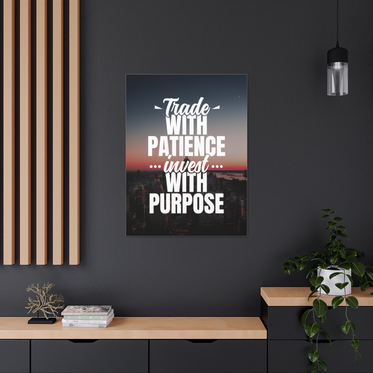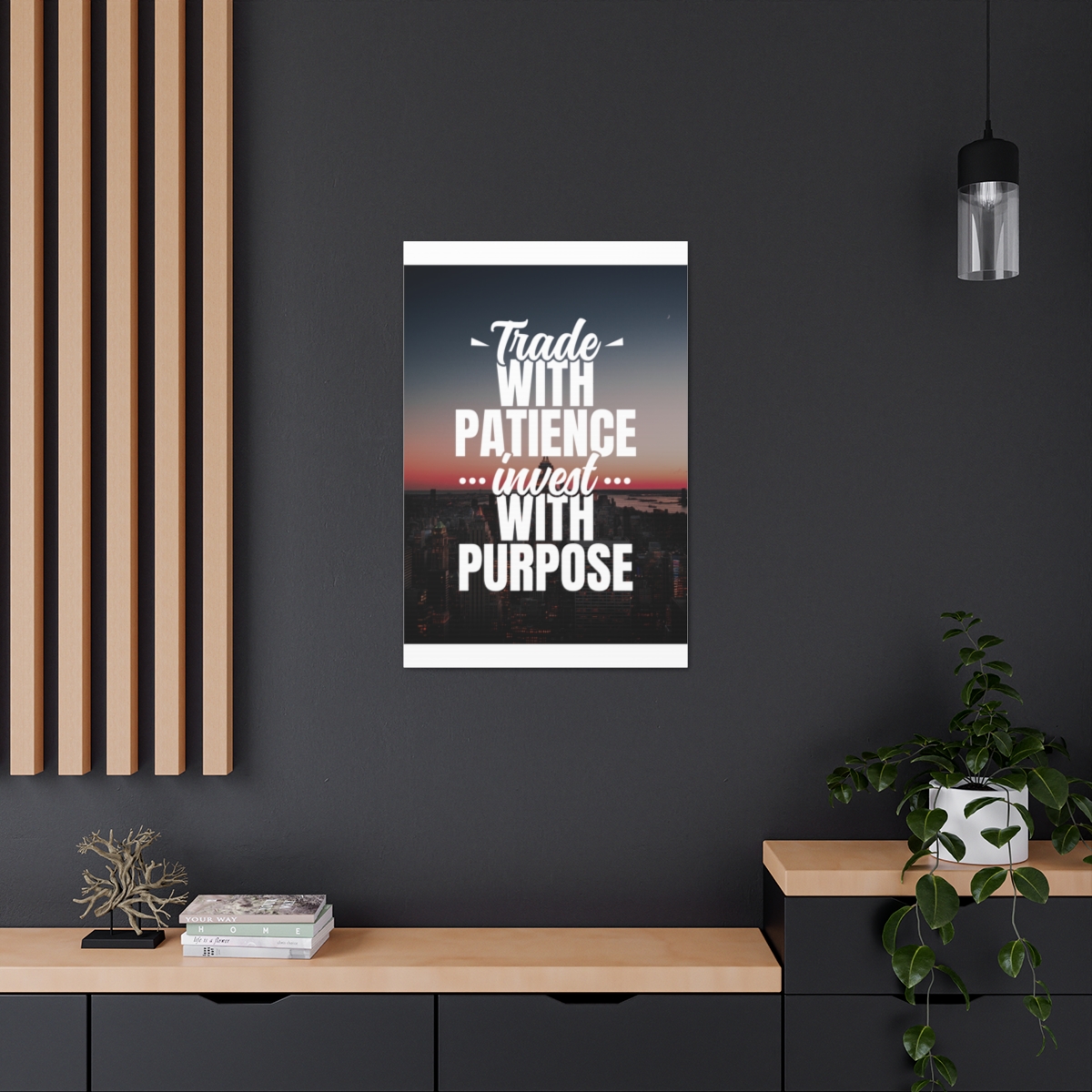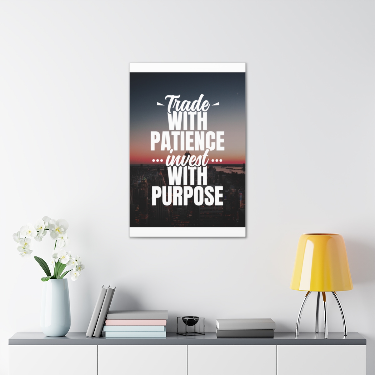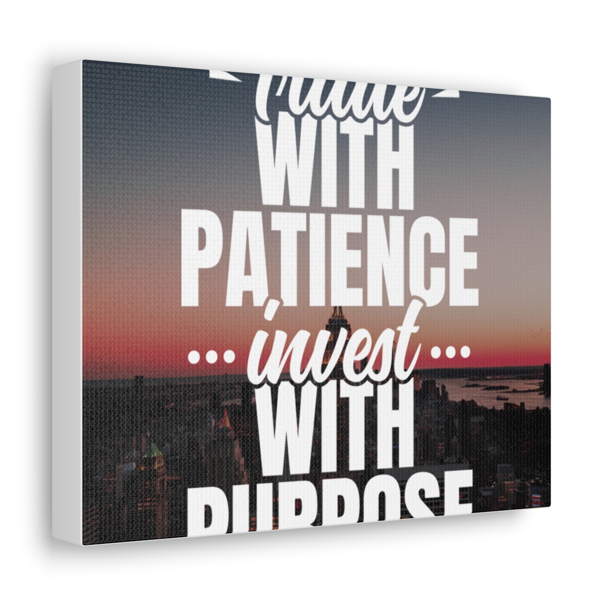 Introducing our exclusive canvas collection – where wisdom meets artistry. Elevate your space with purpose and patience, embodied in the insightful quote: “Trade with patience, invest with purpose.” Our canvas wraps are meticulously crafted to uplift any room’s decor, infusing it with a sense of intention and thoughtful action. Each wrap is printed on top-quality canvas gallery wraps, creating a seamless and visually stunning display. Constructed with a finely textured, artist-grade cotton substrate, these wraps ensure your chosen image is reproduced with exceptional clarity and intricate detail. Available in multiple sizes, these closed-back canvases are not just decorative pieces; they are a representation of strategic thinking and purposeful investing. The patented solid support face provides a robust foundation for your artwork, making these canvases an excellent choice for indoor use. The 100% cotton fabric serves as the perfect medium, allowing for the printing of highly-detailed and vibrant artwork that resonates with every observer. With a thickness of 0.0135 inches (13.5 mil) and weighing 400gsm, these canvases offer a highly durable option, ensuring your prints remain visually stunning for the long run. The closed MDF backing adds an extra layer of protection, preserving the longevity and integrity of your cherished prints. Please note that these canvases are specifically designed for indoor use, ensuring they maintain their beauty and meaningful message for years to come. Transform your space into a haven of purposeful living. Choose our canvas wraps and let your walls inspire you to trade with patience and invest with purpose – because in every decision, there is an opportunity for growth.