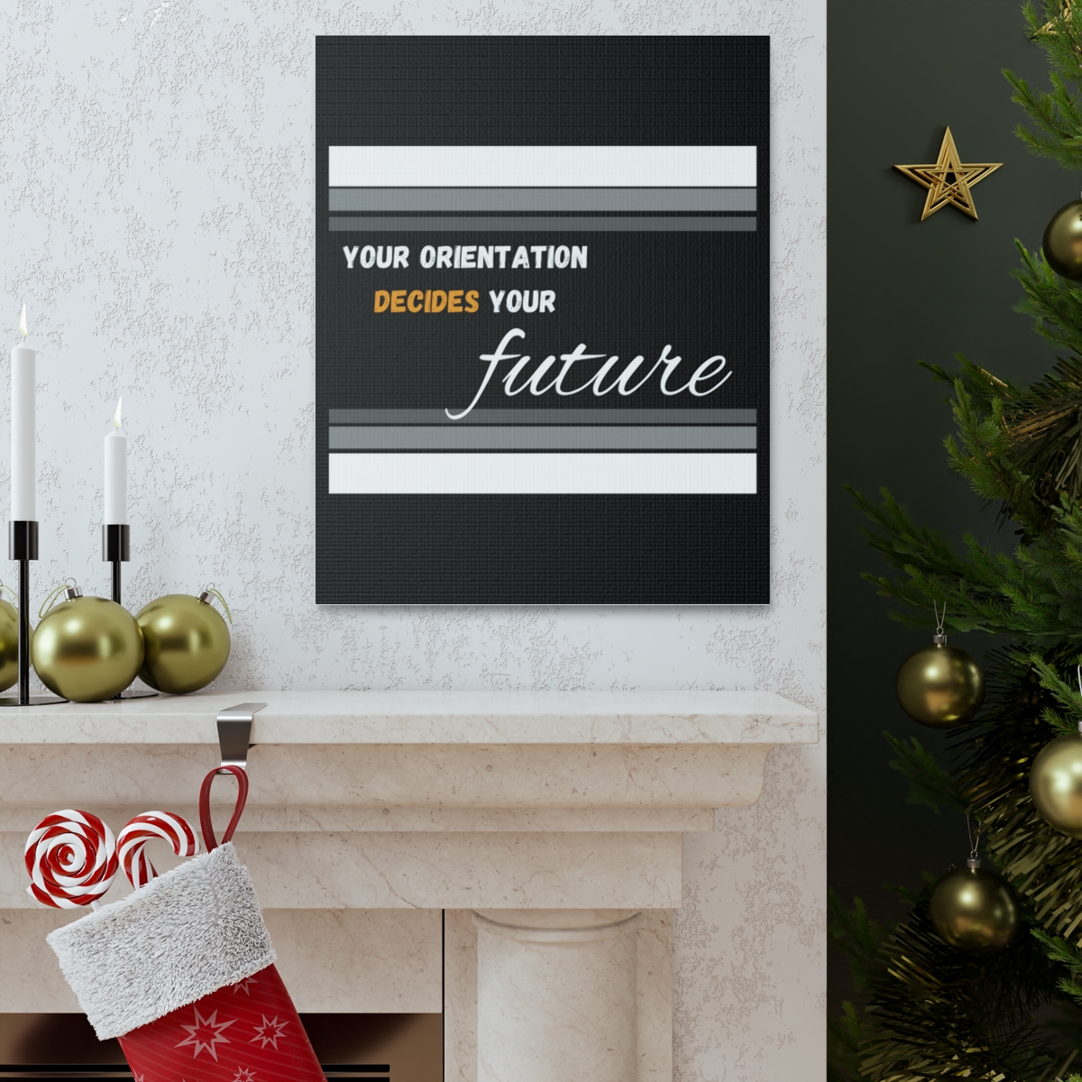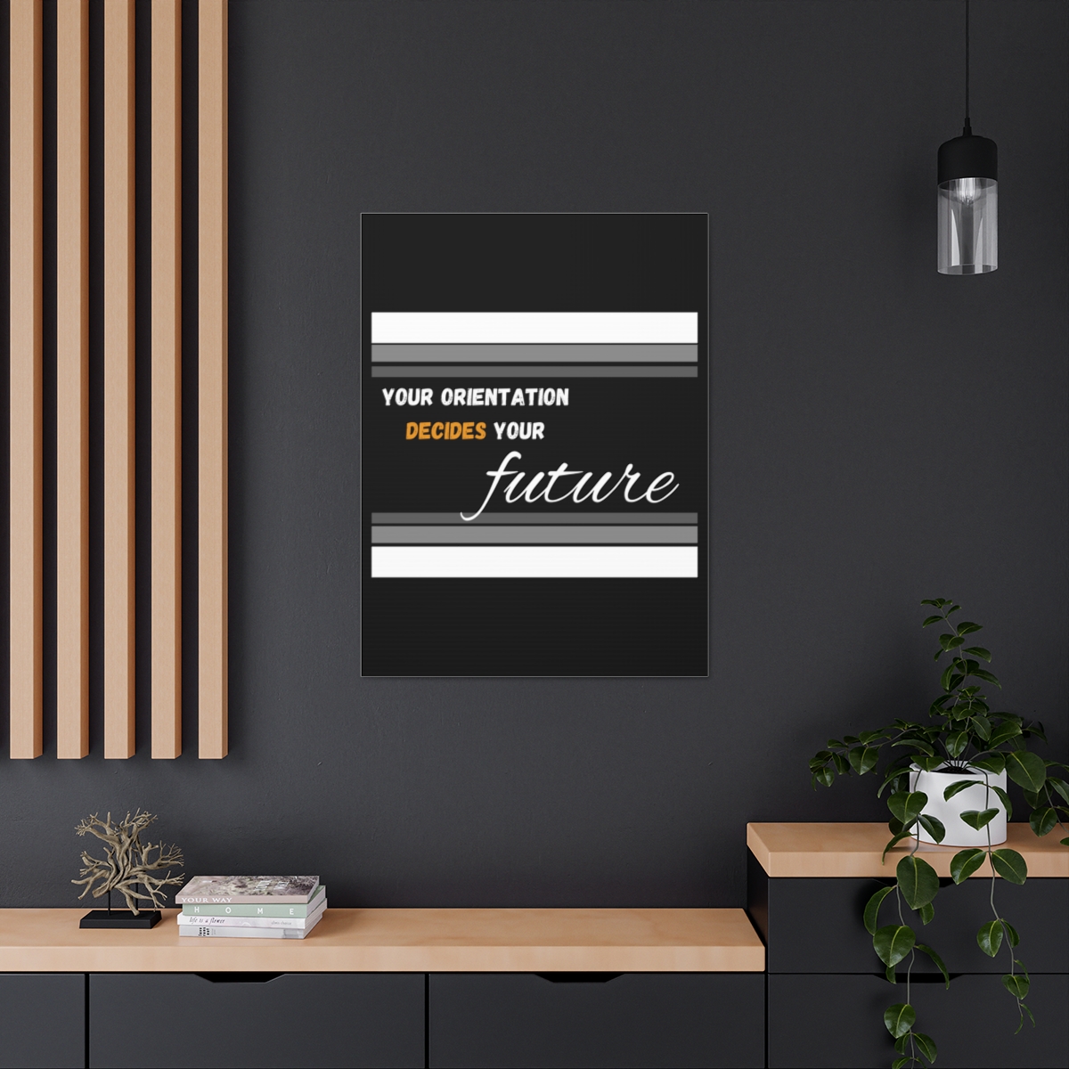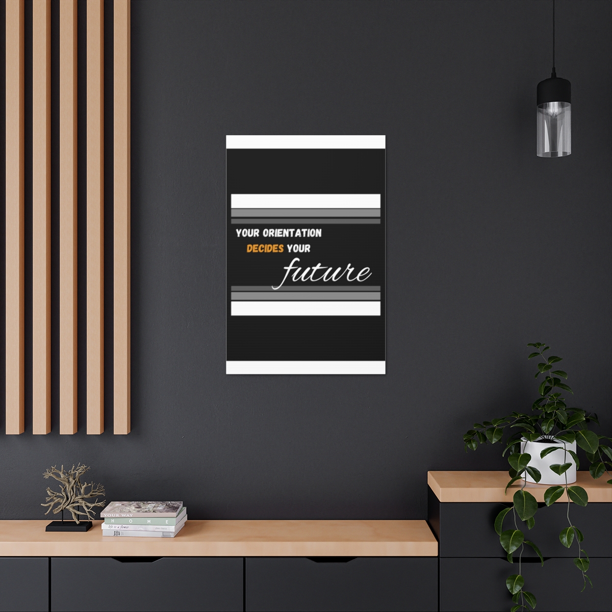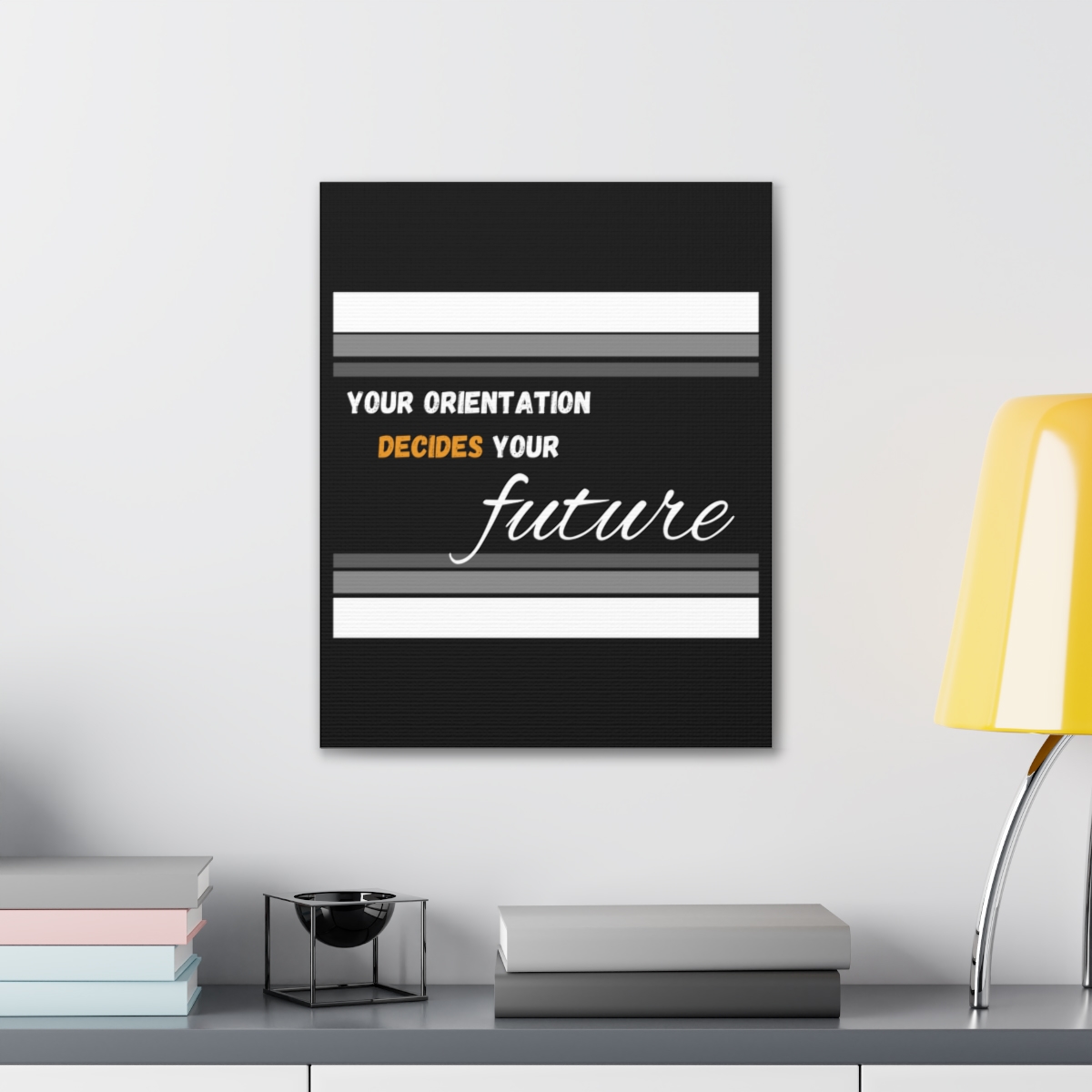 Introducing our empowering canvas collection – where inspiration meets artistry. Transform your space with a touch of motivation and wisdom, embodied in the quote: “Your Orientation decides your Future.” Our canvas wraps are crafted with the utmost care to uplift any room’s decor, infusing it with a blend of elegance and motivational energy. Each wrap is printed on top-quality canvas gallery wraps, creating a seamless and visually captivating display. The wraps are meticulously constructed with a finely textured, artist-grade cotton substrate that ensures your chosen image is reproduced with outstanding clarity and intricate detail. Available in multiple sizes, these closed-back canvases are not just a decoration but a testament to resilience and endurance. The patented solid support face provides a sturdy foundation for your artwork, making these canvases an excellent choice for indoor use. The 100% cotton fabric serves as the perfect medium, allowing for the printing of highly-detailed and vibrant artwork that resonates with every observer. With a thickness of 0.0135 inches (13.5 mil) and weighing 400gsm, these canvases offer a highly durable option, ensuring that your prints remain stunning for the long run. The closed MDF backing adds an extra layer of protection, ensuring the longevity and integrity of your cherished prints. Please note that these canvases are designed for indoor use only, ensuring they retain their beauty and motivational message for years to come. Elevate your surroundings, invest in inspiration. Choose our canvas wraps and let your walls tell a story that encourages and motivates.